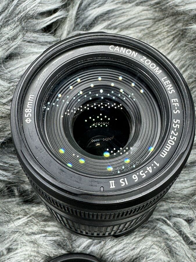 The Canon EOS 77D is a versatile 24.2 MP Digital SLR Camera, perfect for both beginners and enthusiasts. This package includes the EF-S 18-55mm lens and the EF-S 55-250mm f/4-5.6 IS lens, offering a wide range of focal lengths for various photography needs. The camera is in good condition, fully tested, and all functions are working perfectly. It comes with the original battery and charger (1 battery only).